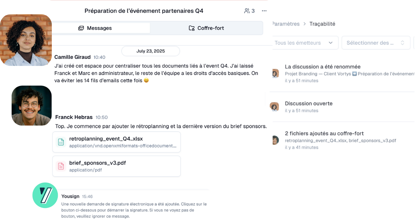 Qui a envoyé quoi, quand, à qui. Et qui a consulté ou signé. Tout est suivi.
